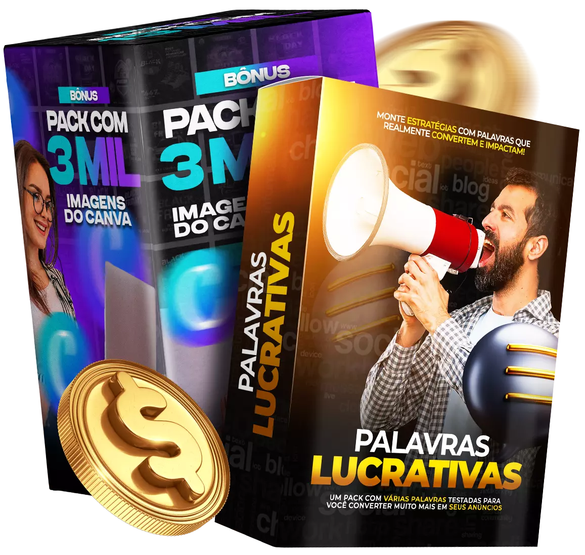 BÔNUS 02: Um pack completo com mais de 3 mil artes editáveis direto no canva com mais de 30 nichos.